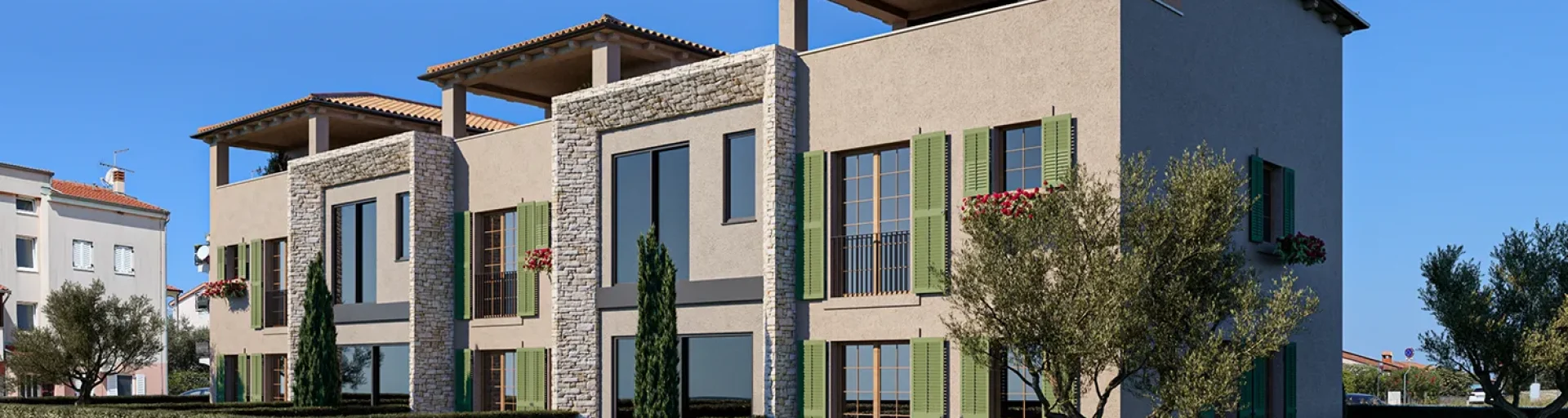 Poreč Townhouses are five state-of-the-art terraced houses in the city of Poreč. This modern housing development combines contemporary architectural features with traditional Istrian building style. The units are ideal homes for young families who will appreciate a quiet neighborhood with low traffic but still have all the necessary amenities nearby.